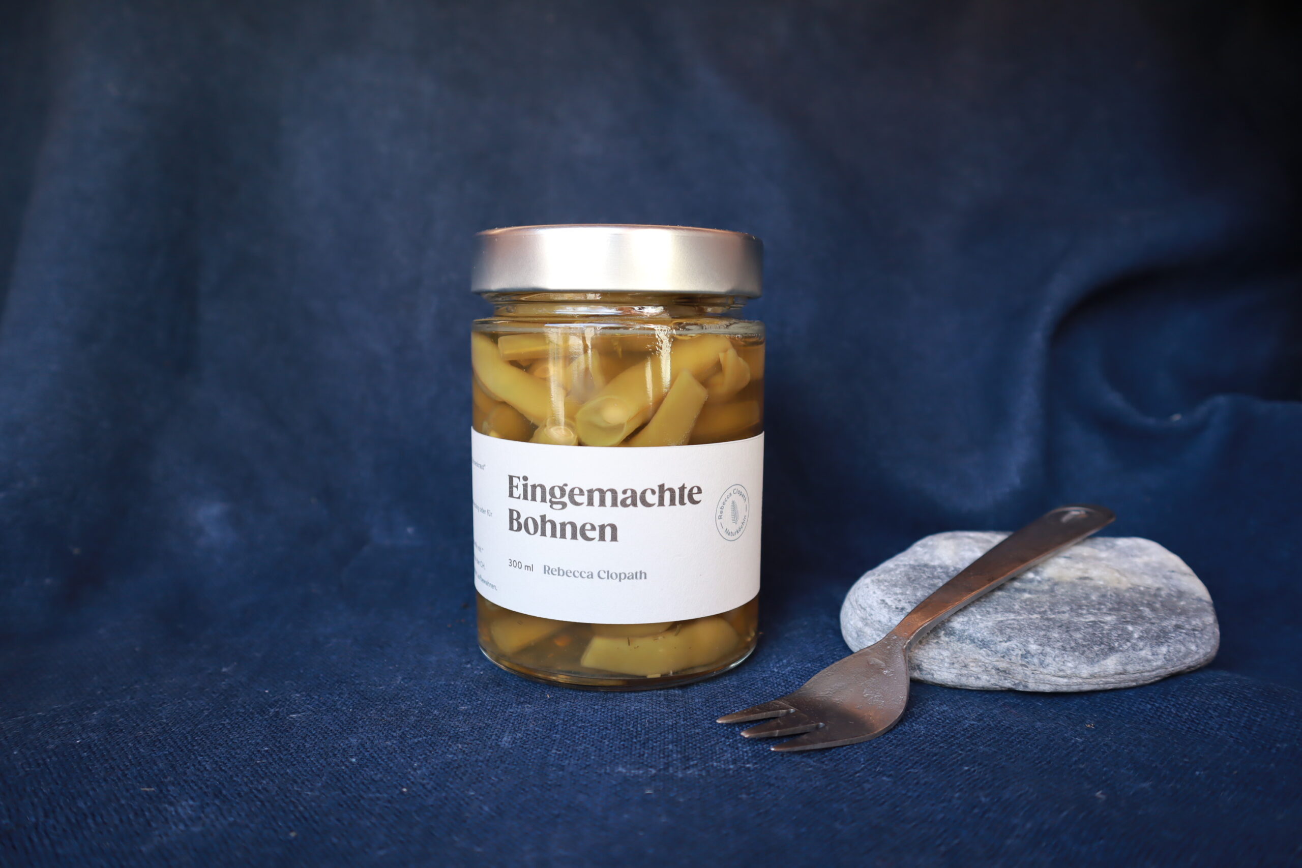 Bohnen* 60%, Apfelessig*, Zucker, Salz, Senfsaat*, Bohnenkraut*