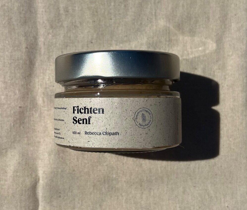 Zutaten: Senfsaat*, 40% Rapsöl (CH), Birnel*, Essig*, Fichtenschösslinge*, Alpensalz